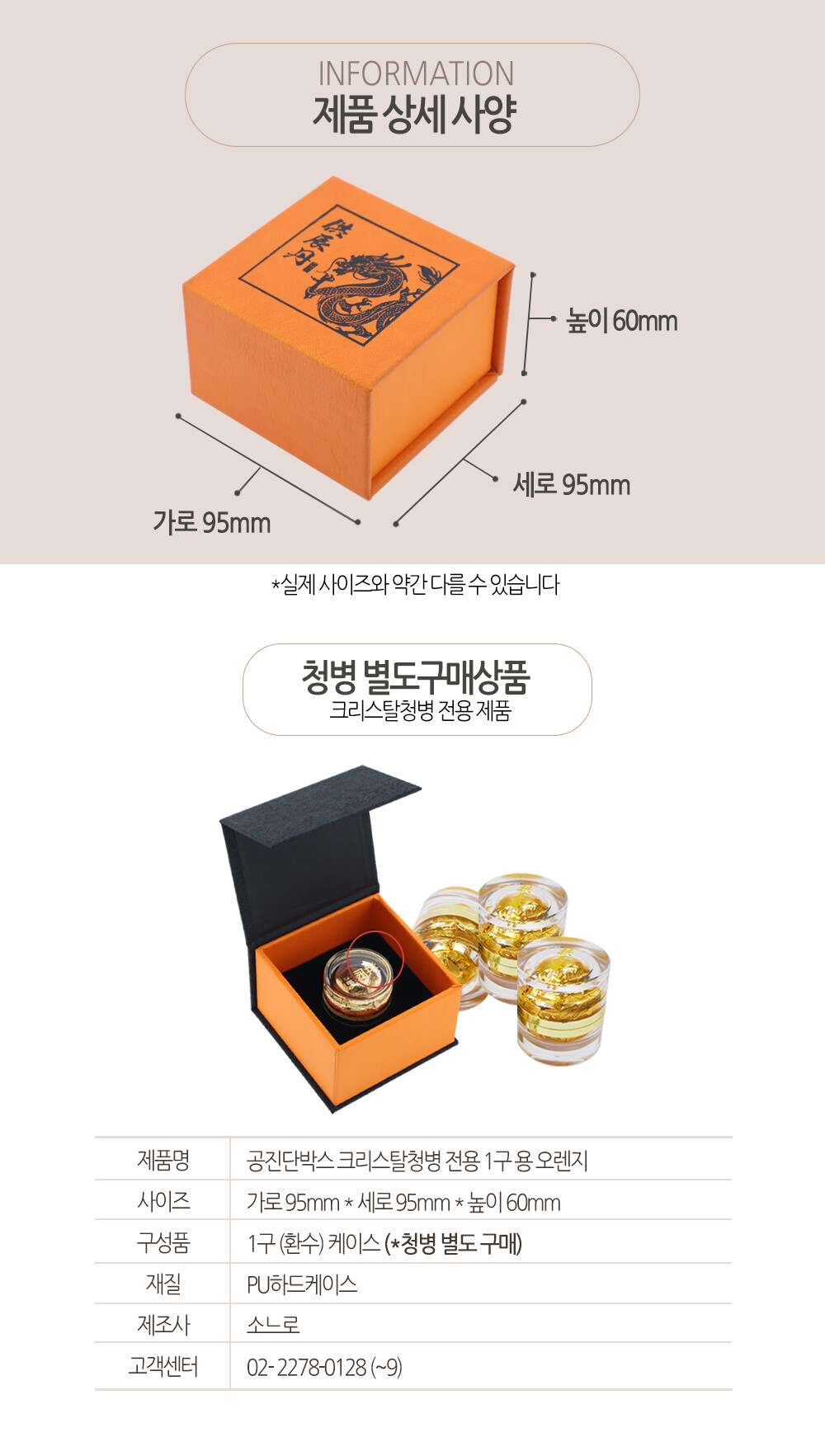공진단박스 크리스탈청병 전용 1구 용 오렌지