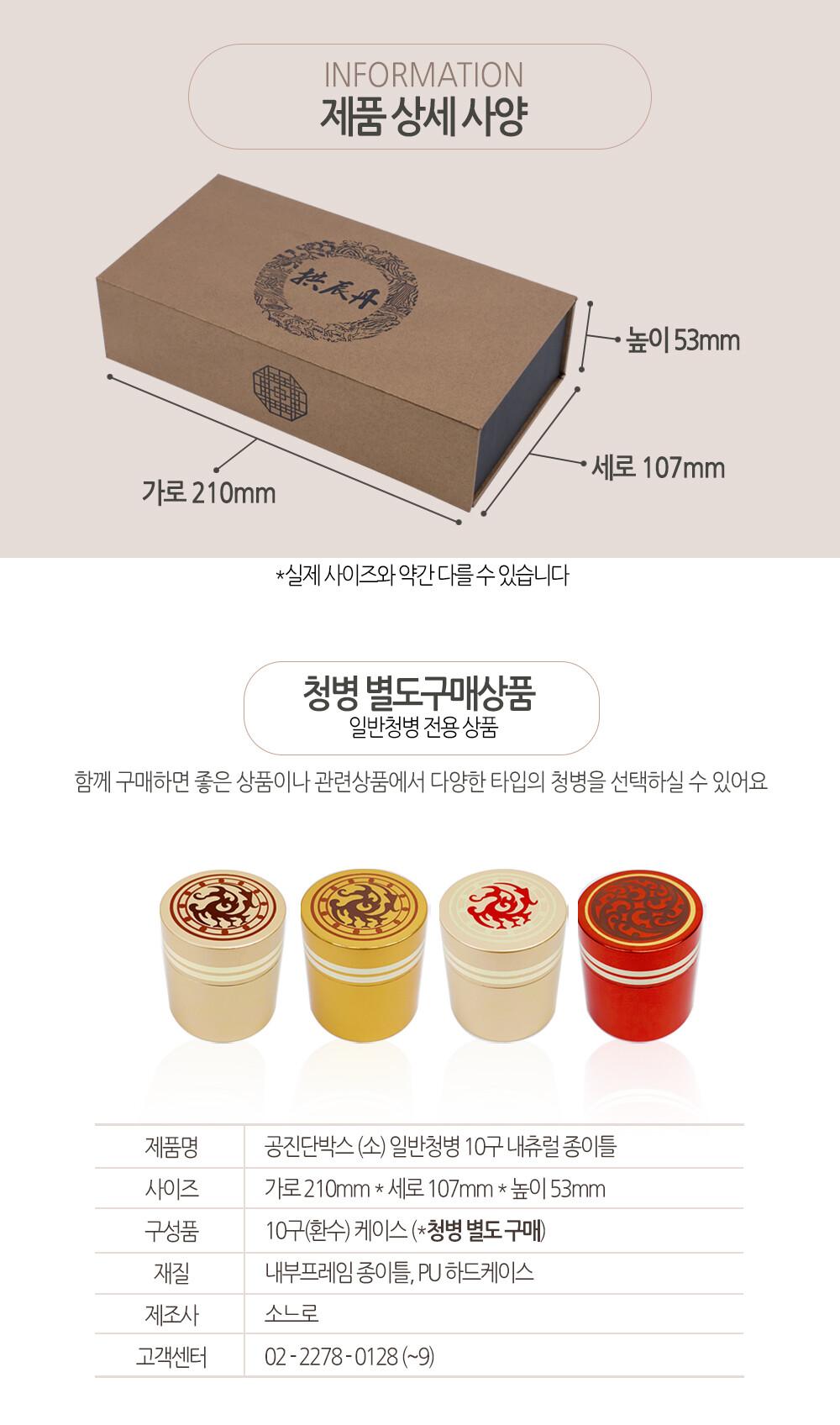 공진단박스 소형 일반청병 10구 내츄럴 종이틀