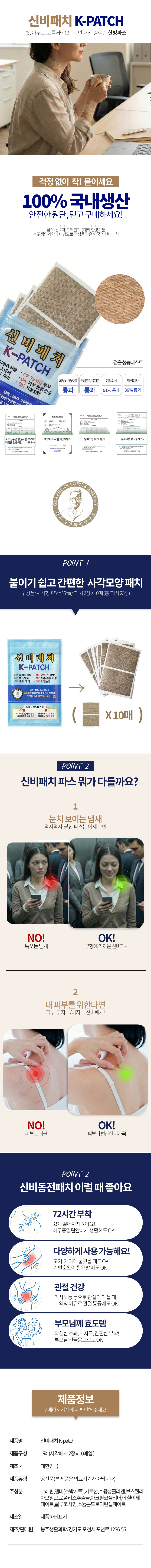 냄새없는 한방 파스 신비패치 사각패치 120매(12매X10장)의 사본