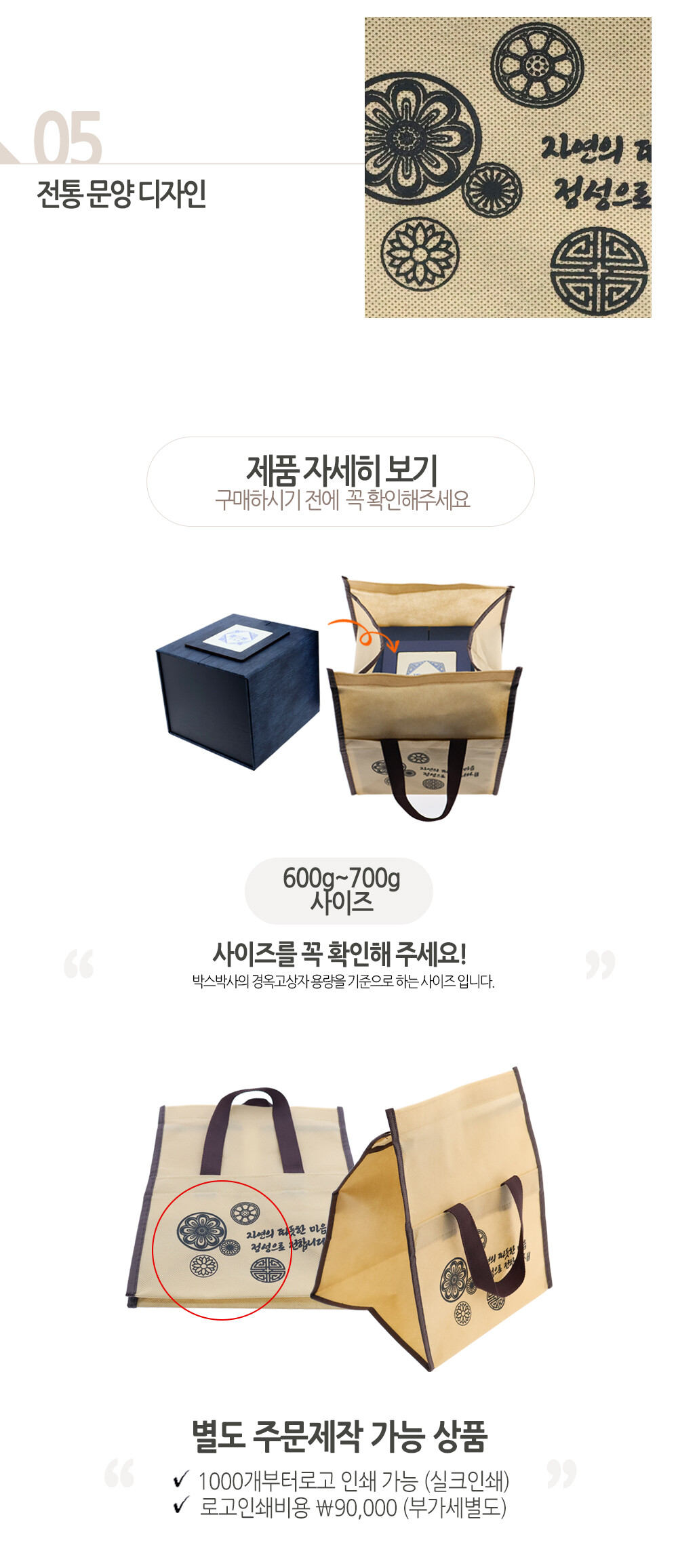 고급스러운 경옥고상자를 담기 위한 디자인 가방입니다.
