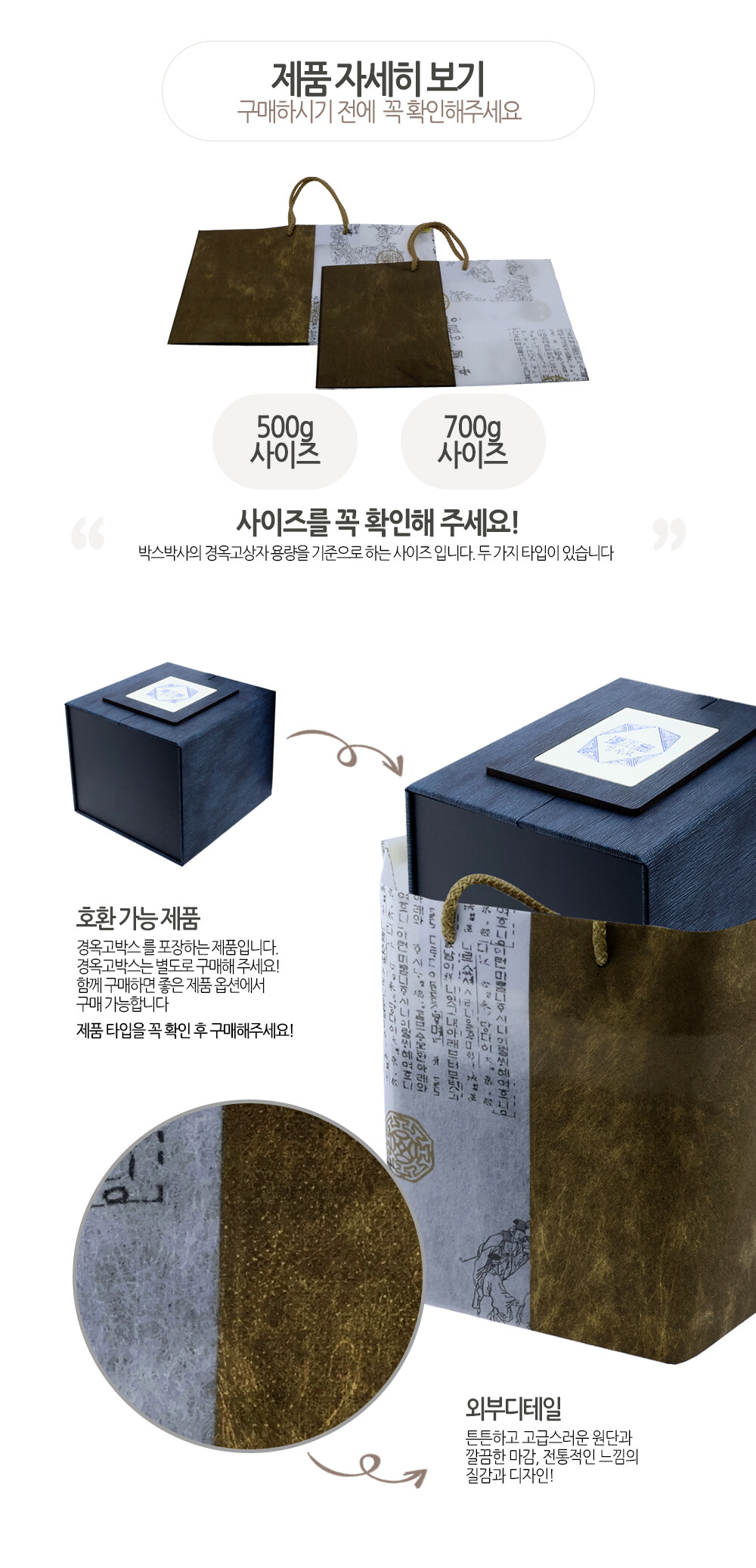 고급스러운 경옥고상자를 담기 위한 디자인 가방입니다.