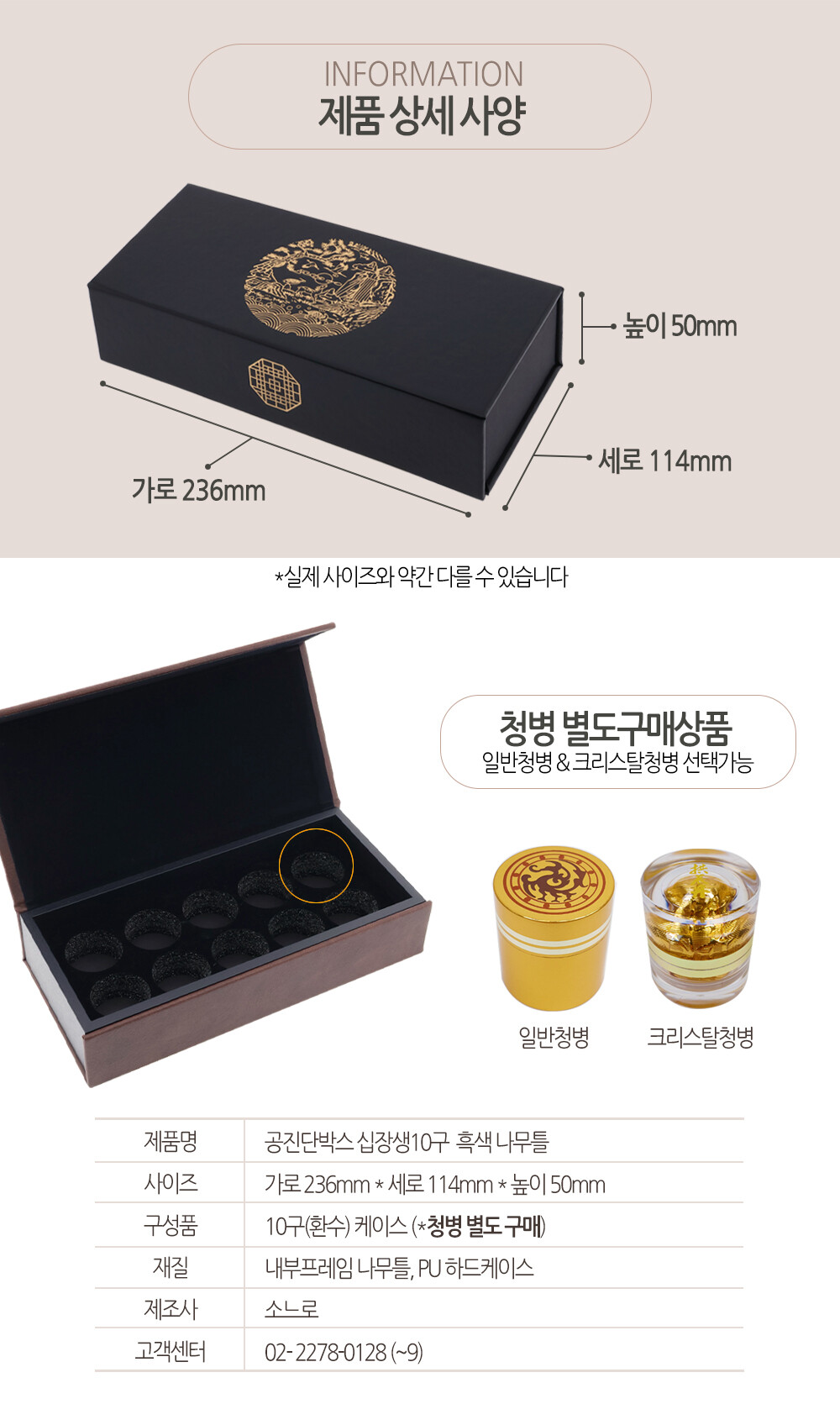공진단박스 십장생 10구 흑색 나무틀