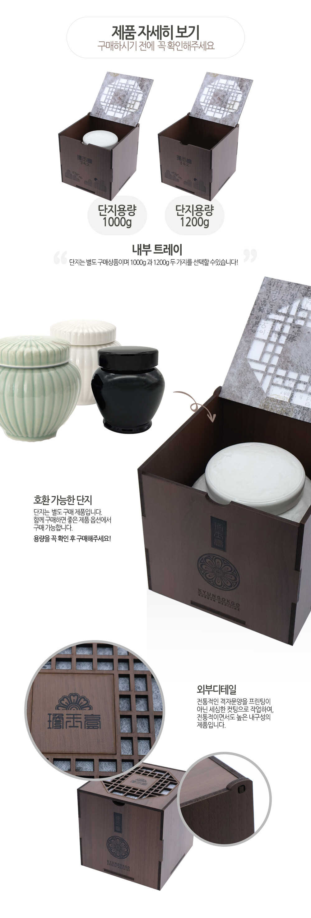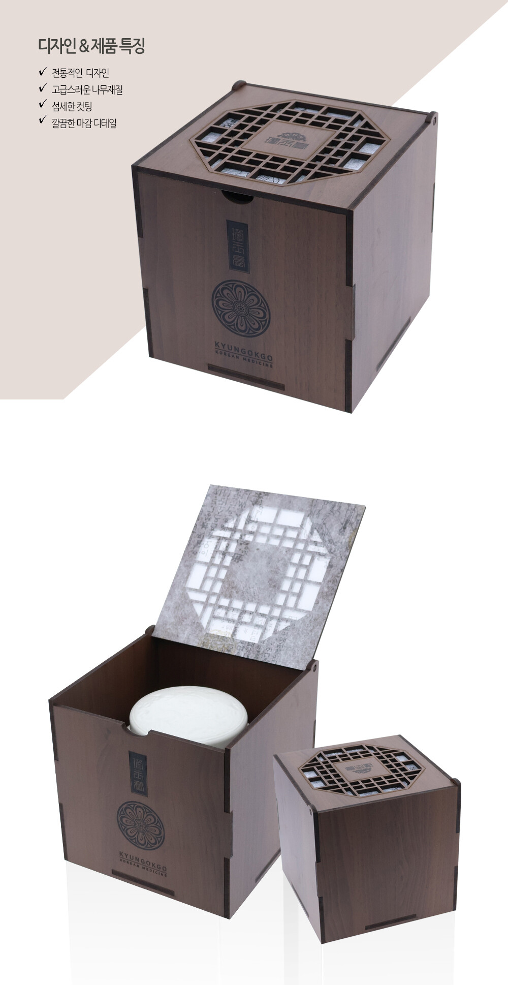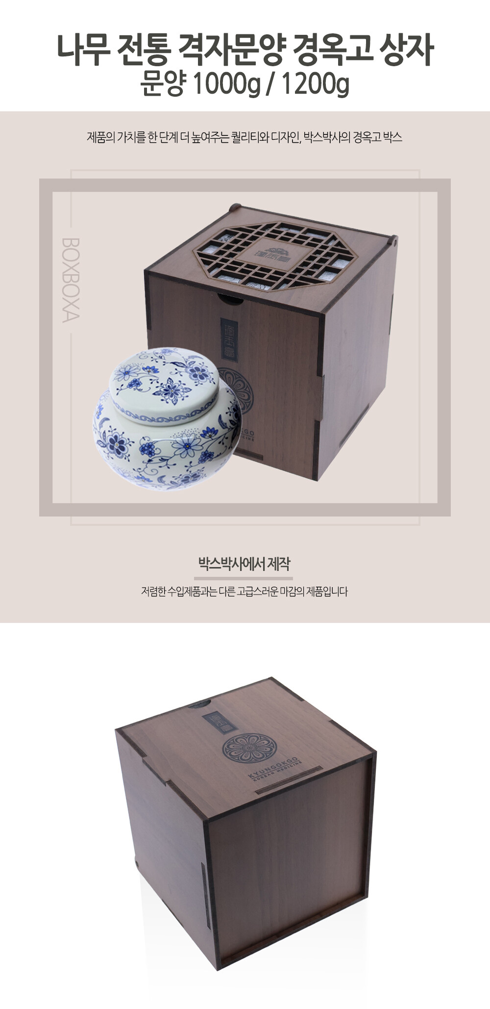 나무 전통 격자문양 경옥고 상자 1000g / 1200g 문양